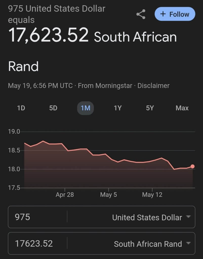 Traditional banks aren’t always as transparent with their conversion rates and fees, so they don’t typically have conversion calculators on their websites. Therefore, I decided to just use Google’s conversion rate on the same day that my friend’s Wise screenshot was taken. This isn’t a perfect option, but it should give us a rough idea of what a traditional bank’s conversion rate could be. In fact, Google’s conversion rate on this date was 1 USD = 18.0754 ZAR, which was better than Wise’s at 1 USD = 18.0700 ZAR, for a difference of Google converting 0.0054 more ZAR per US dollar.